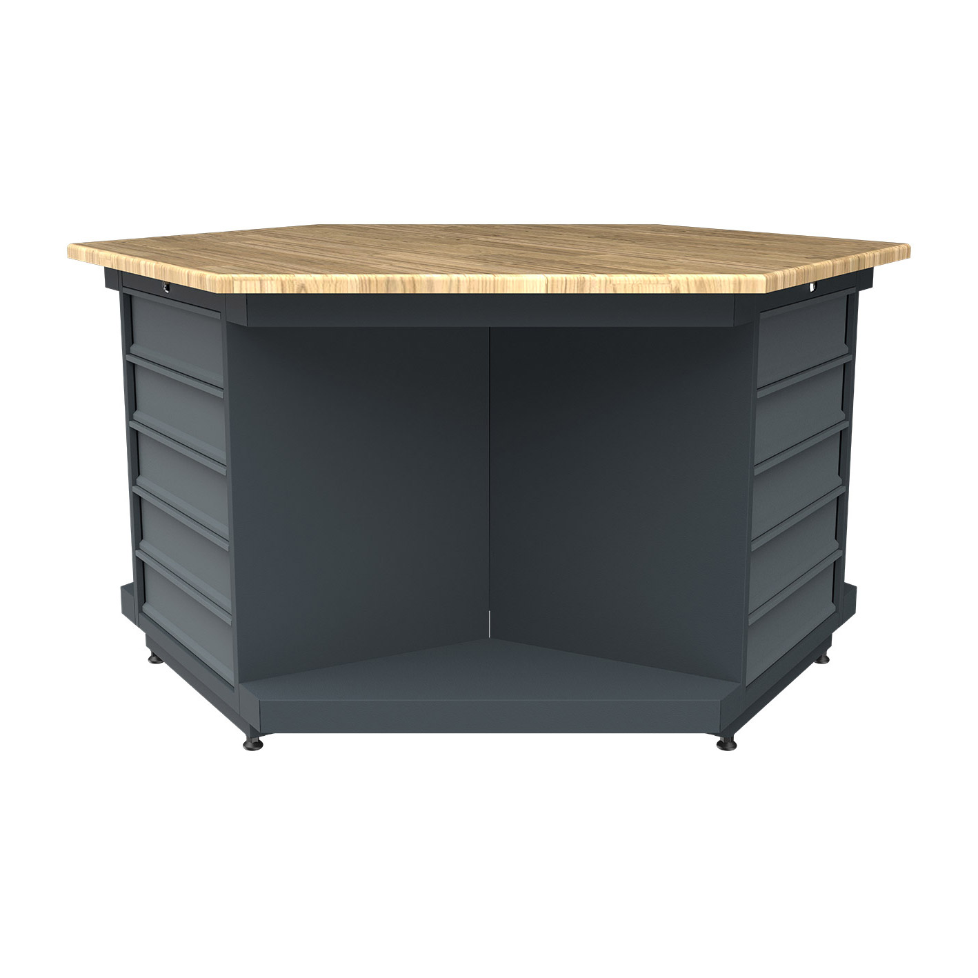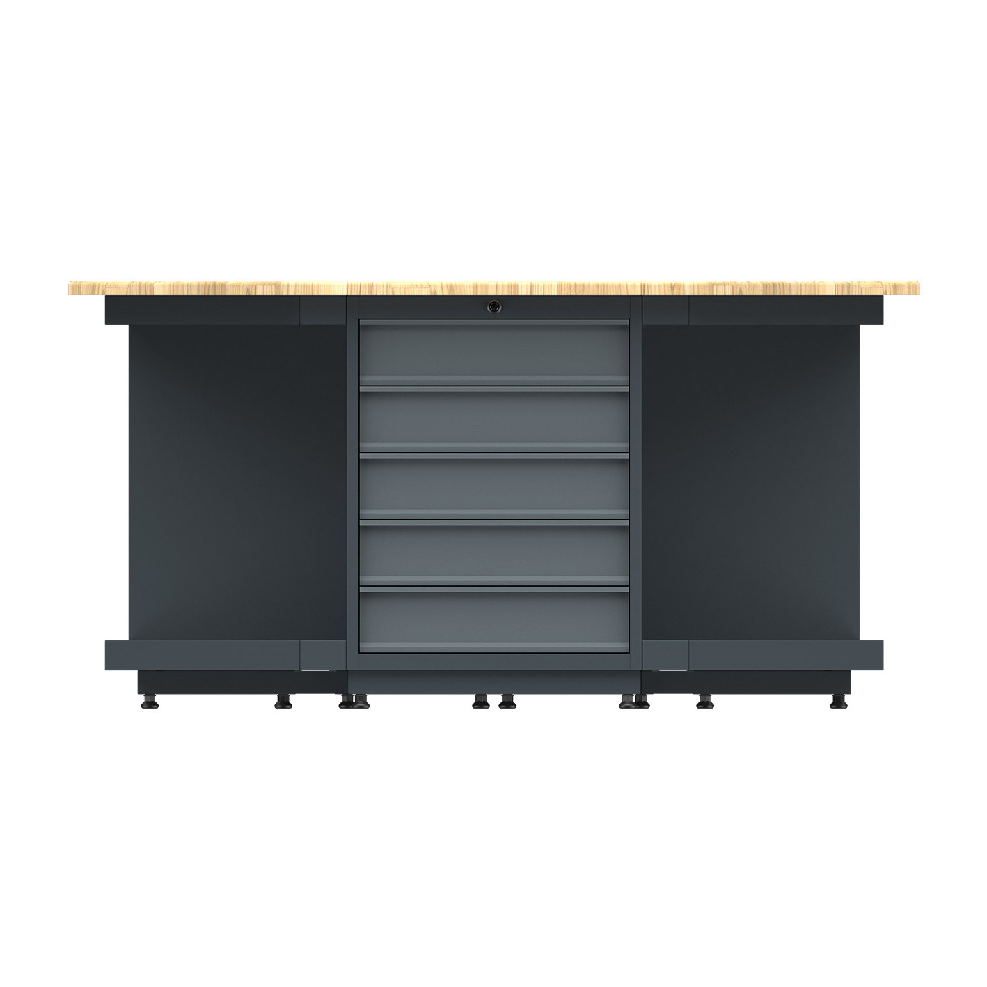 Çalışma Tablası; 1550x1767mm ölçülerinde 30mm masif kayın panelden üretilmiş olup paslanmaz çelik tabla alternatifi mevcuttur.