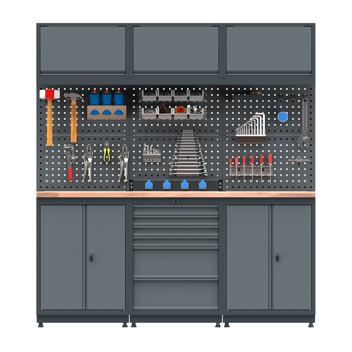 Delikli Pano Ölçüleri; 5 adet H375XW620XD15mm boyutlarındadır, 1 adet H300XW620XD15mm boyutlarındadır.