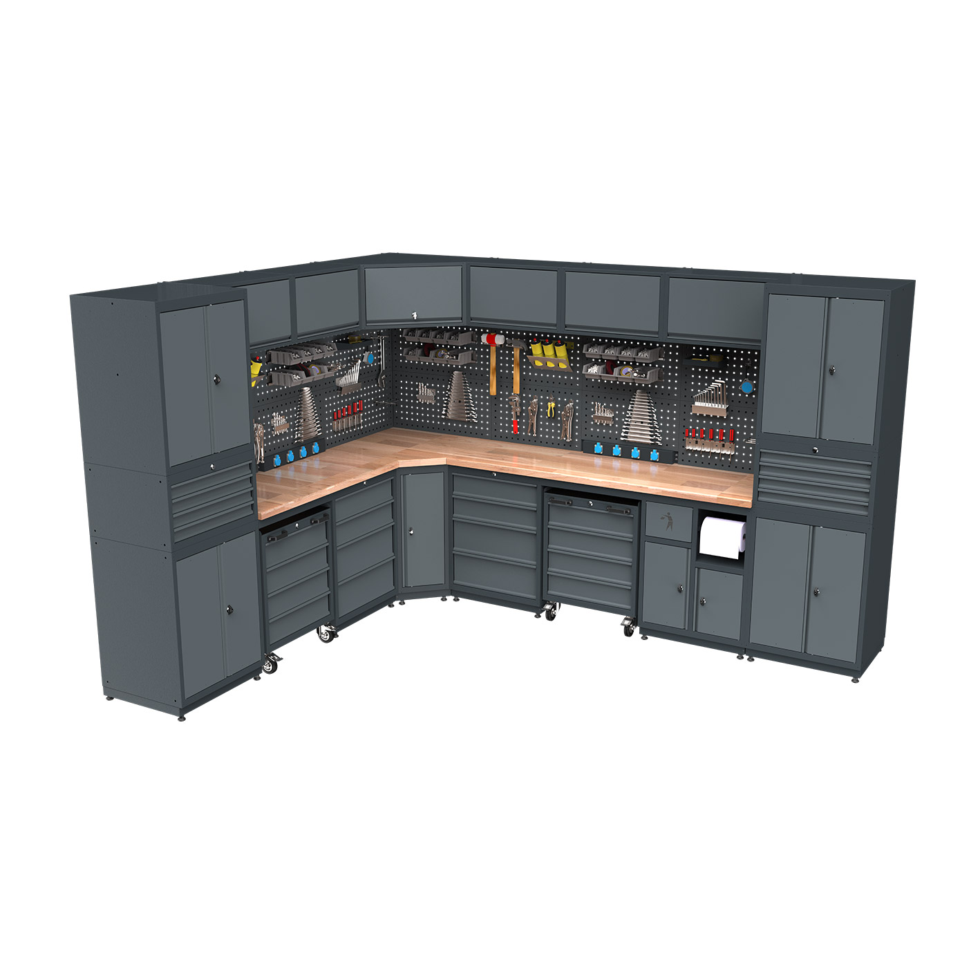 Çalışma Tablası; 550x1860mm, 750X750mm ve 550x1240mm ölçülerinde 30mm masif kayın panelden üretilmiş olup paslanmaz çelik tabla alternatifi mevcuttur.